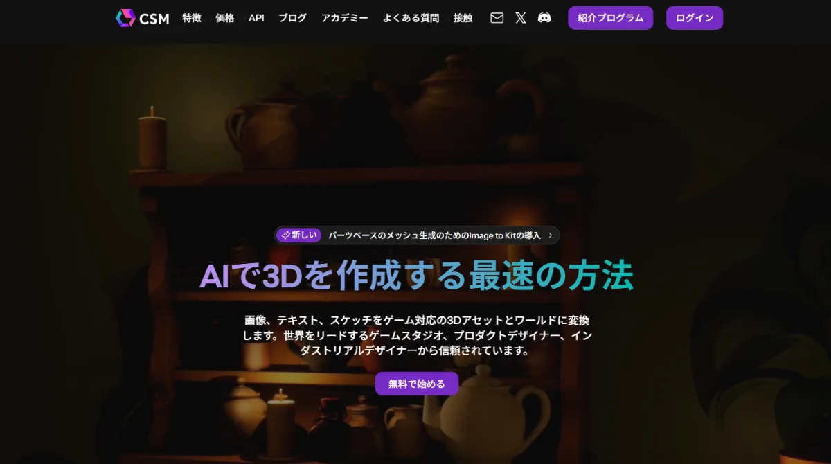 概要:2Dのイラストやコンセプトアート、写真から、ゲームや映画で使用できる高品質な3Dモデルを短時間で生成することに特化したAIプラットフォーム。